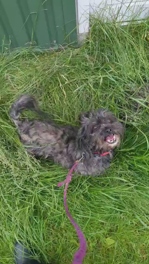 Thigi er halv puddel og halv shih tzu og er lige blevet 10 år gammel. Nogle tricks kan hun i forvejen men langt det meste lære hun samtidig med optagelserne.